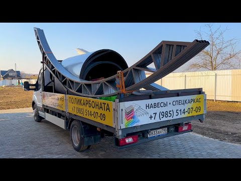 Монтаж навеса из поликарбоната для двух автомобилей на объекте нашего заказчика
